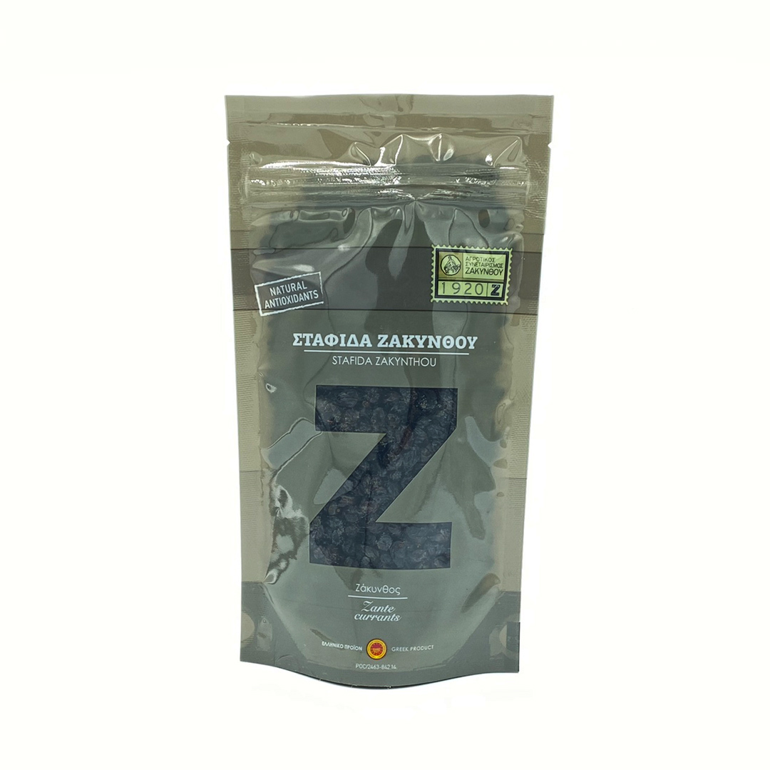 Σταφίδα Μαύρη Ζακύνθου. Ο Αγροτικός Συνεταιρισμός (ΑΣ) Ζακύνθου ιδρύθηκε το 1920 και δραστηριοποιείται σε διάφορους τομείς παραγωγής, μεταποίησης και εμπορίας αγροτικών προϊόντων. Μέσα σε αυτά και η μαύρη σταφίδα της Ζακύνθου, ένα εκλεκτό προϊόν με μεγάλη θρεπτική αξία. Φυσικώς αποξηραμένη στον ήλιο, πλούσια σε σίδηρο, κάλιο, σελήνιο, βιταμίνες Α, Β και φυτικές ίνες.