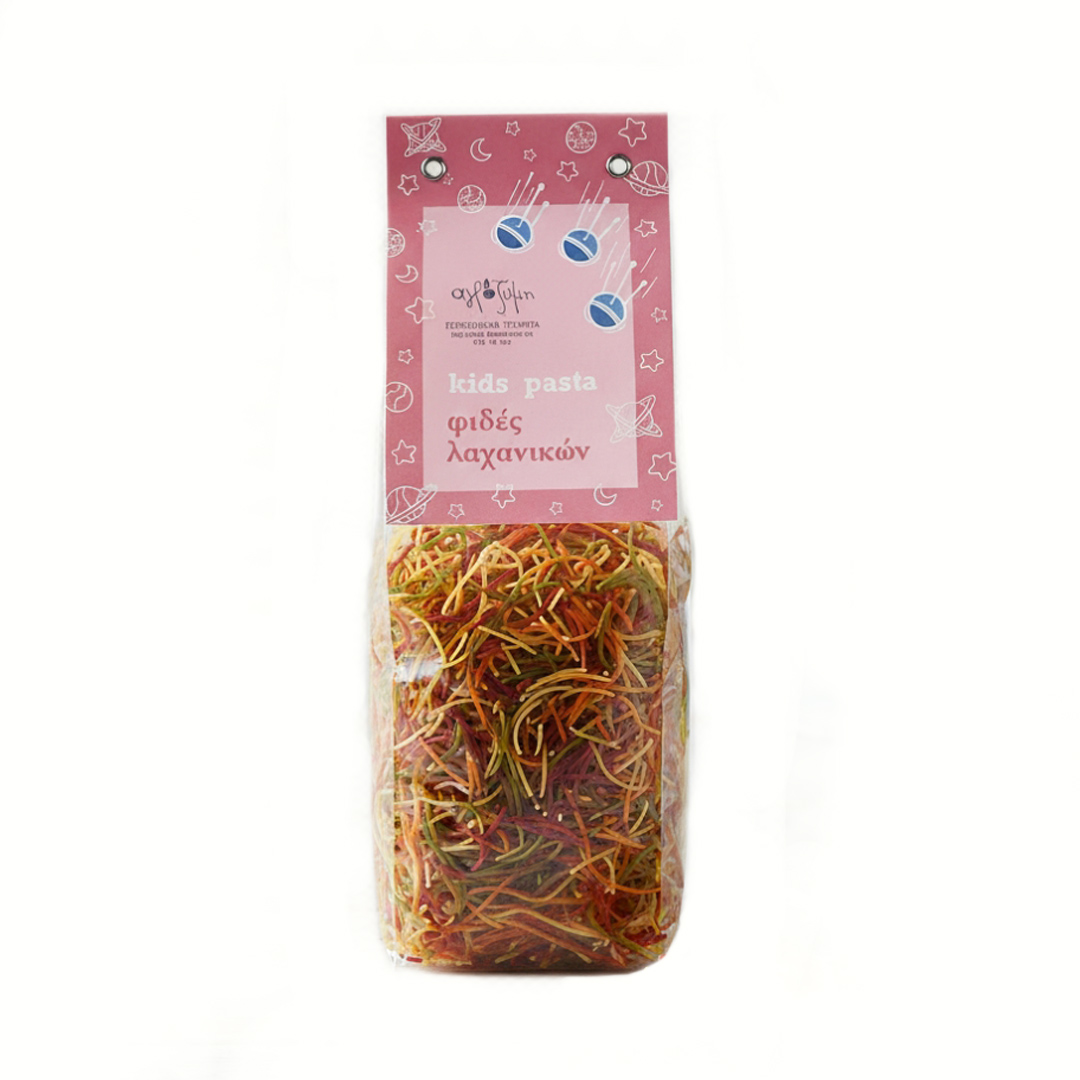 Φιδές Λαχανικών Παιδικός από ελληνικό σιμιγδάλι σκληρού σίτου από σπανάκι, πατζάρι & κόκκινο πιπέρι. Ιδανικά για την παιδική διατροφή, χωρίς πρόσθετα και άλλα συντηρητικά.
