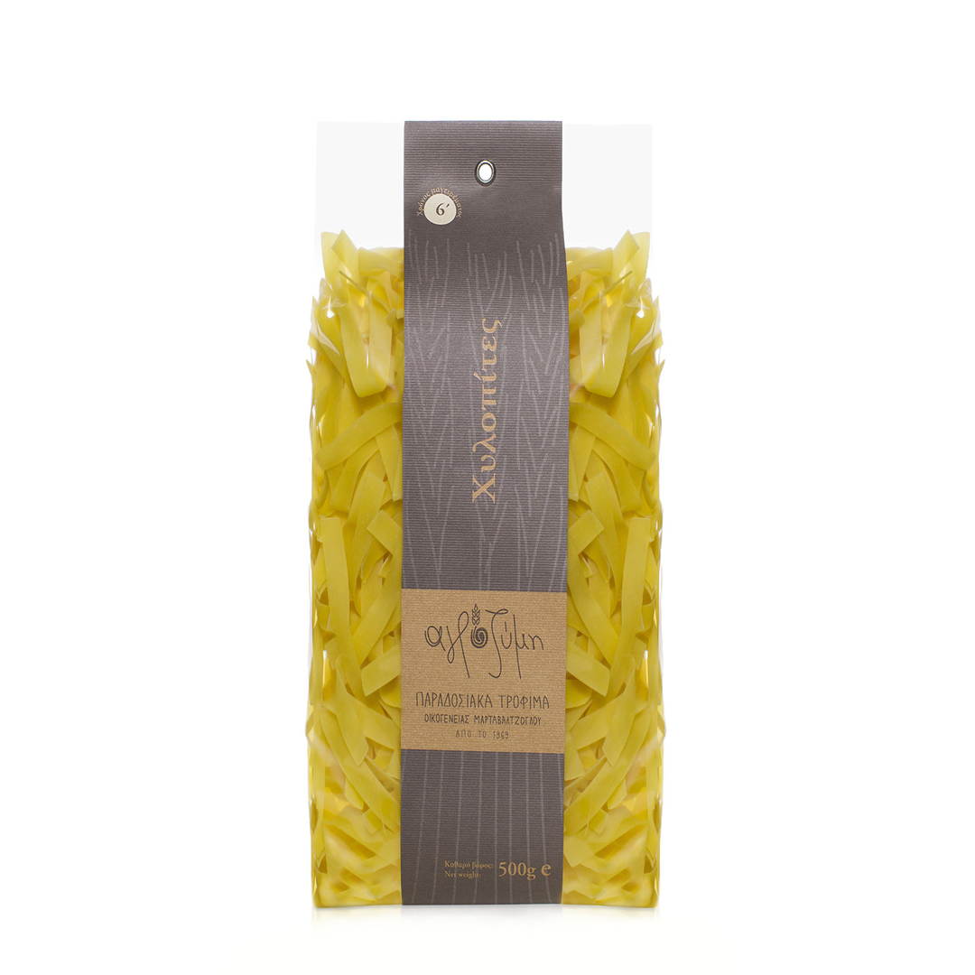 Μία λέξη που κουβαλάει μνήμες αιώνων. Μυρωδιά ολόφρεσκου ζυμαρικού που στεγνώνει κατακαλόκαιρο, πάνω σε λευκά σεντόνια, στο σπίτι της γιαγιάς… Είναι ίσως ένα από τα αρχαιότερα ζυμαρικά στη λεκάνη της Μεσογείου. Στην αρχαία Ελλάδα, γνωρίζουμε ότι οι νοικοκυρές έφτιαχναν το «λάγανον», μία στρογγυλή και λεπτή ζύμη από αλεύρι και νερό, την οποία, αφού στέγνωνε,τη θρυμμάτιζαν με τα χέρια και δημιουργούσαν ένα ζυμαρικό παρόμοιο με τις σημερινές χυλοπίτες. Οι χυλοπίτες Αγροζύμη έχουν όλη τη γεύση της παράδοσης και γίνονται με αυστηρά επιλεγμένα υλικά. Οι χυλοπίτες είναι από τα ζυμαρικά τα οποία δεν στραγγίζονται. Σερβίρονται μαζί με το χυλωμένο ζουμάκι τους, εξού και το σημερινό όνομά τους. Απολαύστε τες με κοκκινιστό κόκορα, με φιλετάκια κοτόπουλου, με μία σάλτσα φέτας ή σκέτες με μία κουταλιά γιαούρτι και λίγο φρεσκοτριμένο πιπέρι.