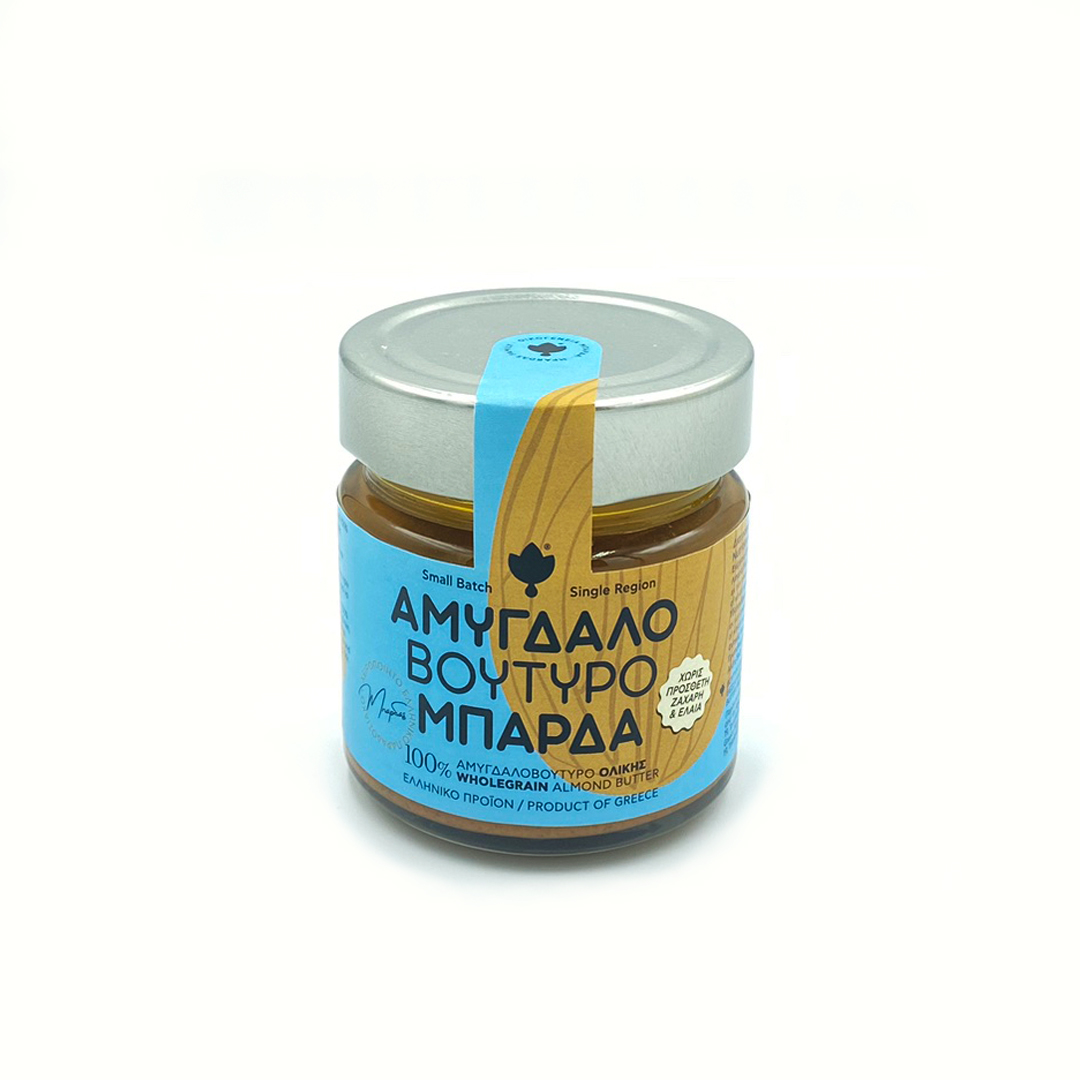 Αμυγδαλοβούτυρο χειροποίητο παραδοσιακό προϊόν χωρίς γλουτένη, φοινικέλαιο, ζάχαρη και συντηρητικά.