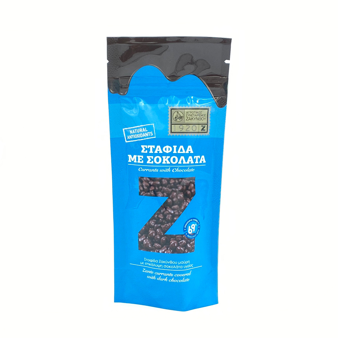Μαύρη σταφίδα Ζακύνθου με επικάλυψη σοκολάτας υγείας απο τον Αγροτικό Συνεταιρισμό Ζακύνθου