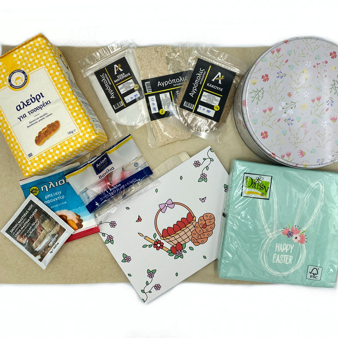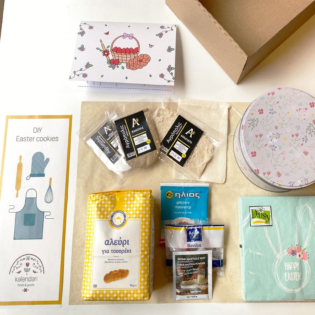 Δημιουργικό κουτί με συνταγή και υλικά για Πασχαλινά Κουλουράκια. Δείτε αναλυτικά τι περιέχει το κουτί μας στην περιγραφή πιο κάτω.
